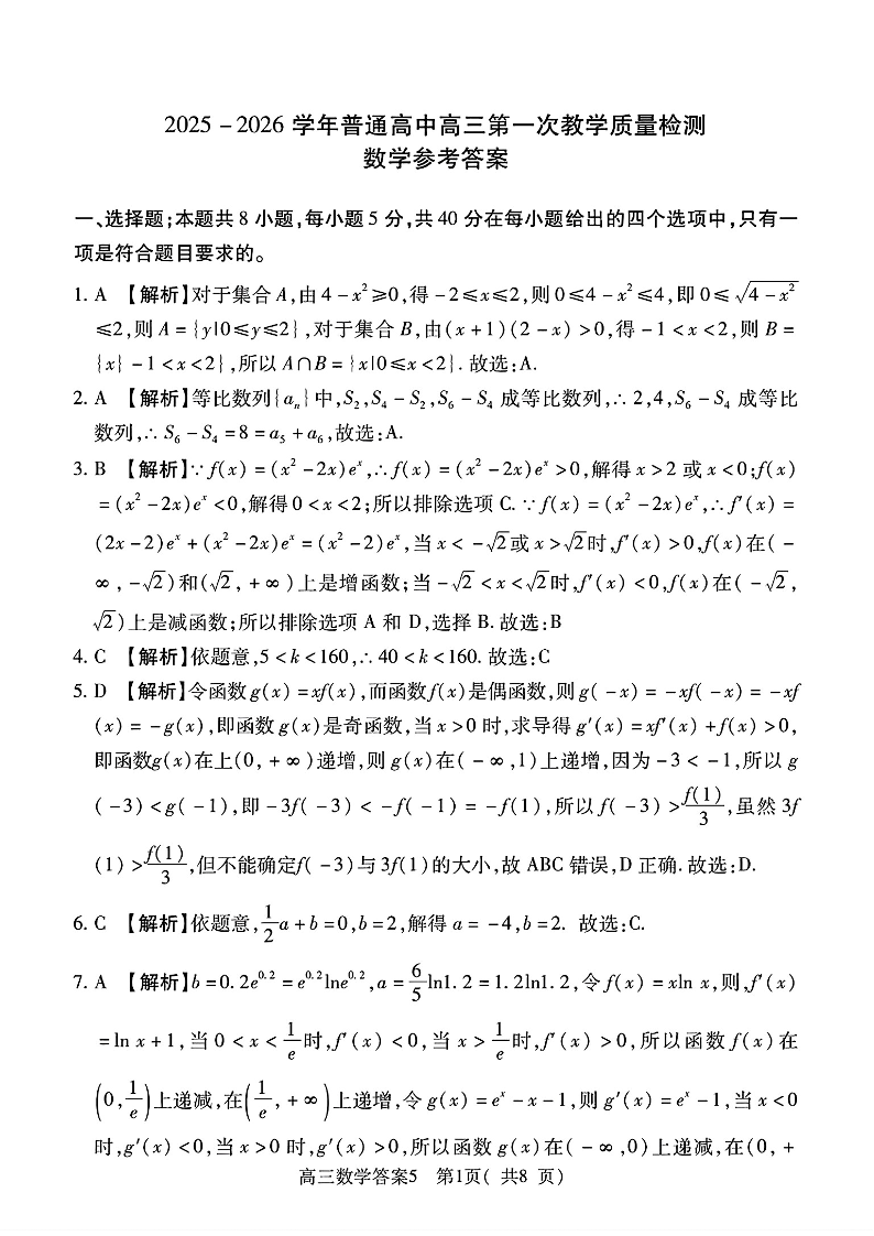 2025-2026学年普通高中高三第一次教学质量检测 数学答案.pdf