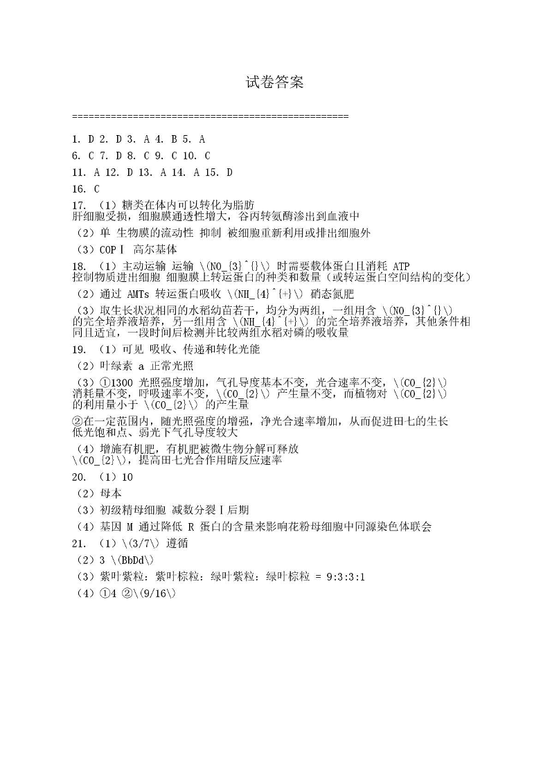 2025-2026学年普通高中高三第一次教学质量检测 生物答案.pdf