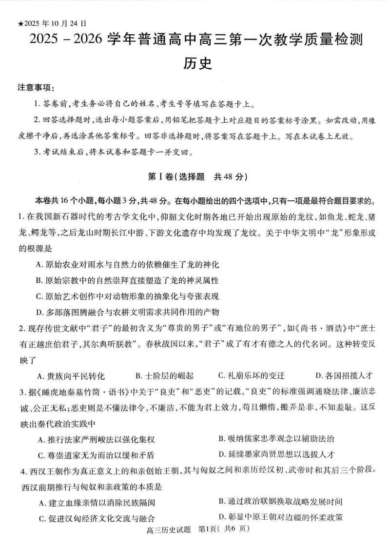 2025-2026学年普通高中高三第一次教学质量检测 历史.pdf