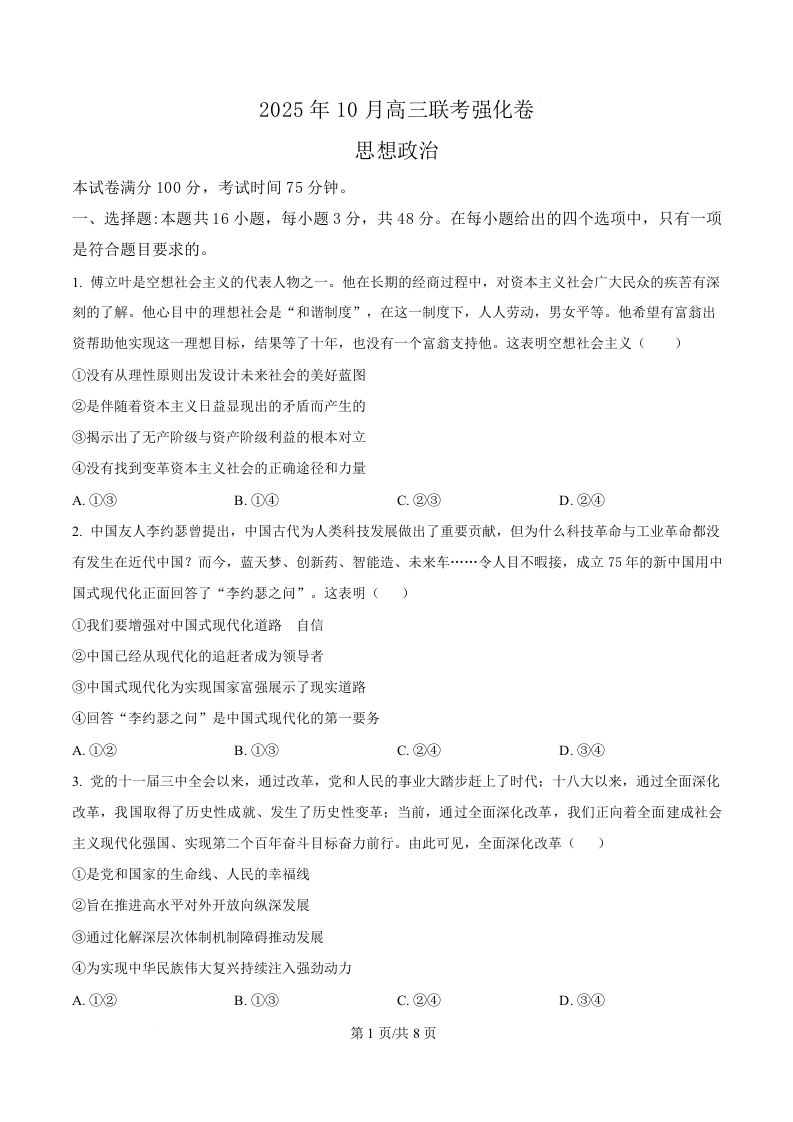 东北三省精准教学联盟(理想树联考)2026届10月高三联考强化卷 政治.docx