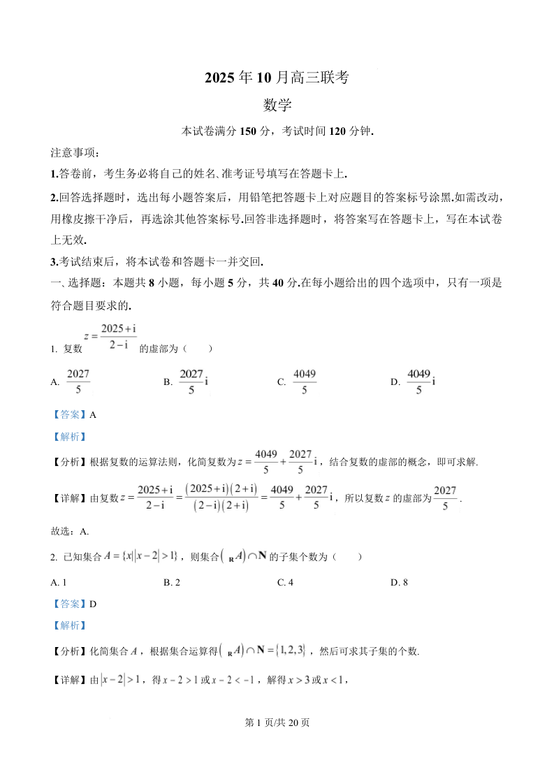 东北三省精准教学联盟(理想树联考)2026届10月高三联考强化卷 数学答案.docx