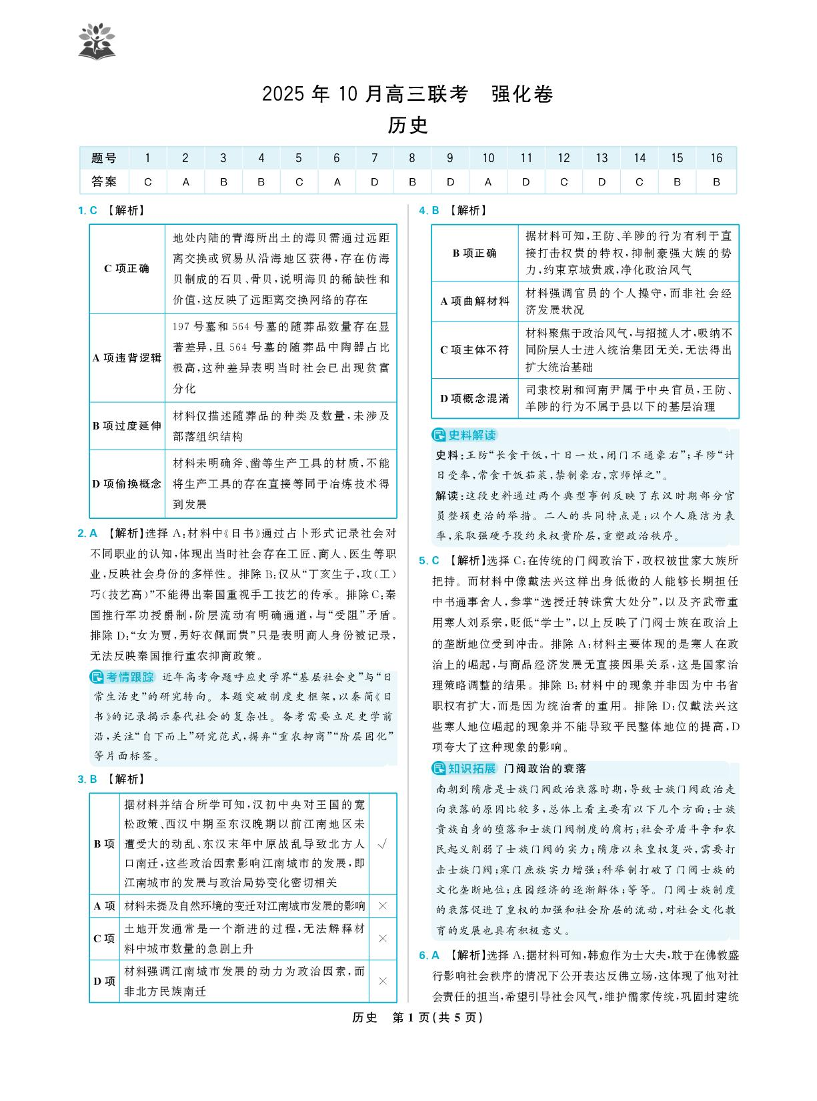 东北三省精准教学联盟(理想树联考)2026届10月高三联考强化卷 历史答案.pdf