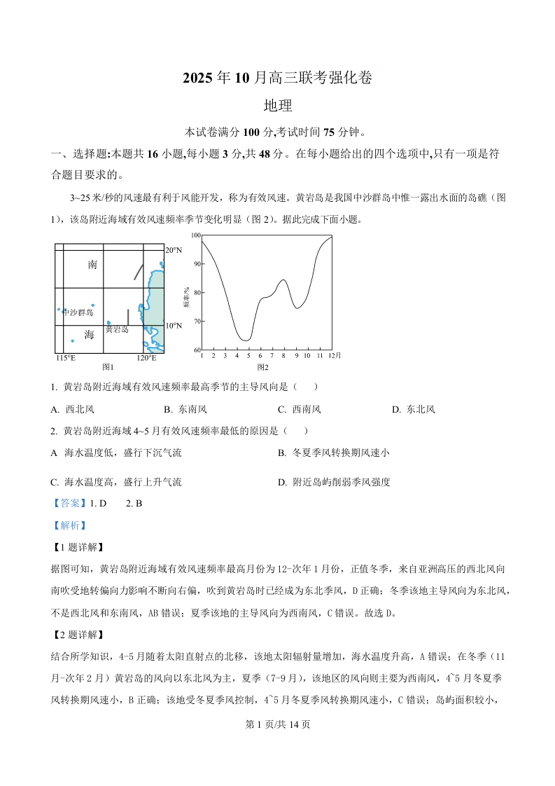 东北三省精准教学联盟(理想树联考)2026届10月高三联考强化卷 地理答案.docx