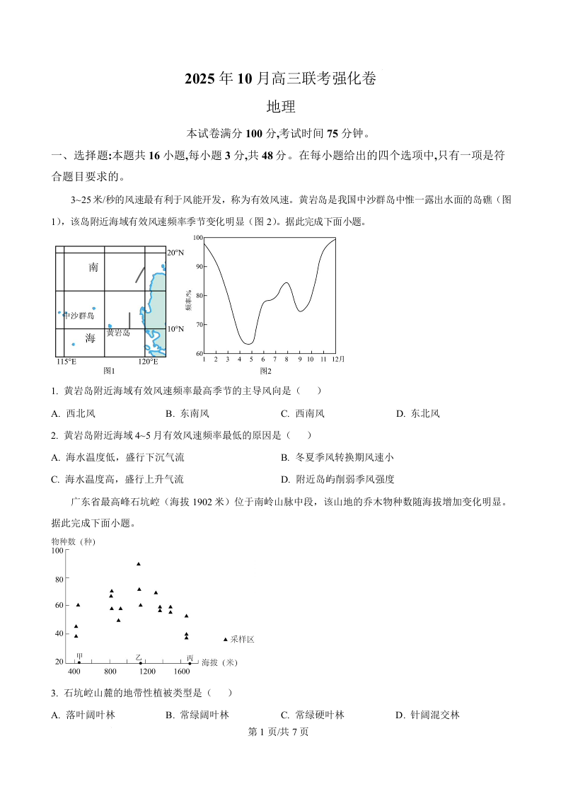 东北三省精准教学联盟(理想树联考)2026届10月高三联考强化卷 地理.docx