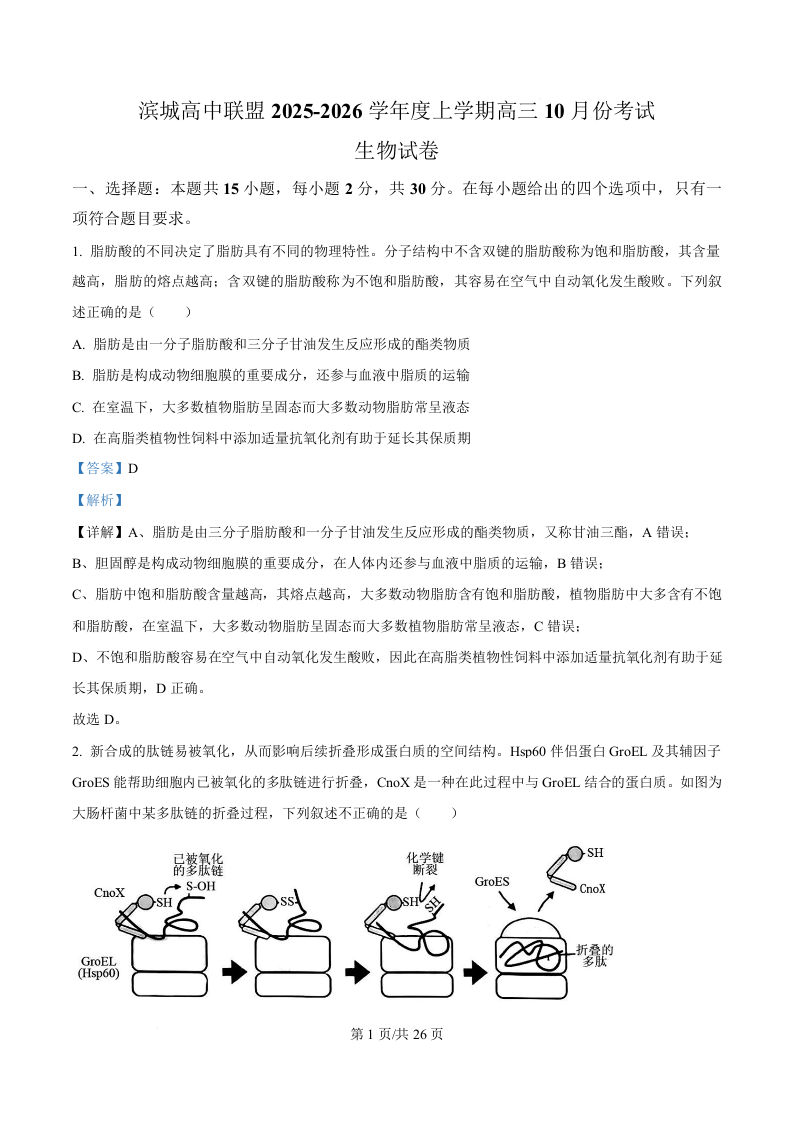 辽宁省大连市滨城高中联盟2026届高三上学期期中Ⅰ考试 生物答案.docx