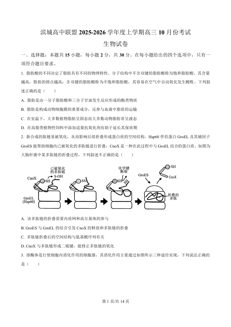 辽宁省大连市滨城高中联盟2026届高三上学期期中Ⅰ考试 生物.docx