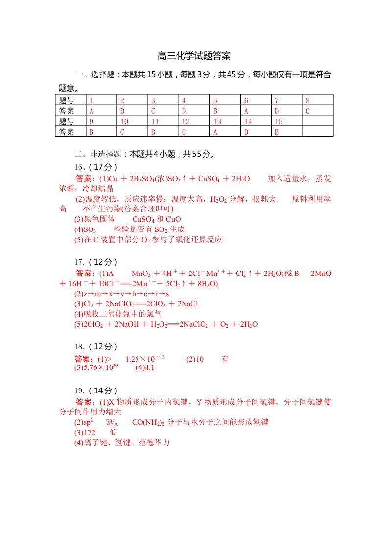 湖北省2026届上学期八校一模联考 化学答案.docx