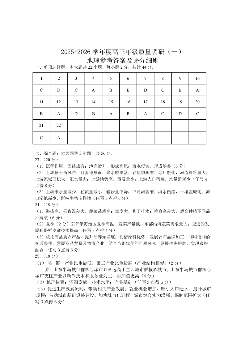 江苏省南通市如皋市2026届高三上学期教学质量调研(一)地理答案.docx