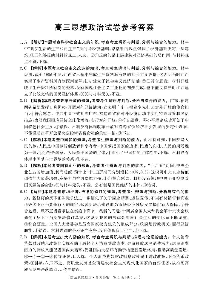 江西省2026届高三上学期10月联考 政治答案.pdf