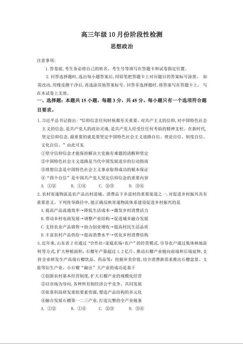 山东师范大学附属中学2026届高三上学期10月份阶段性检测 政治.docx