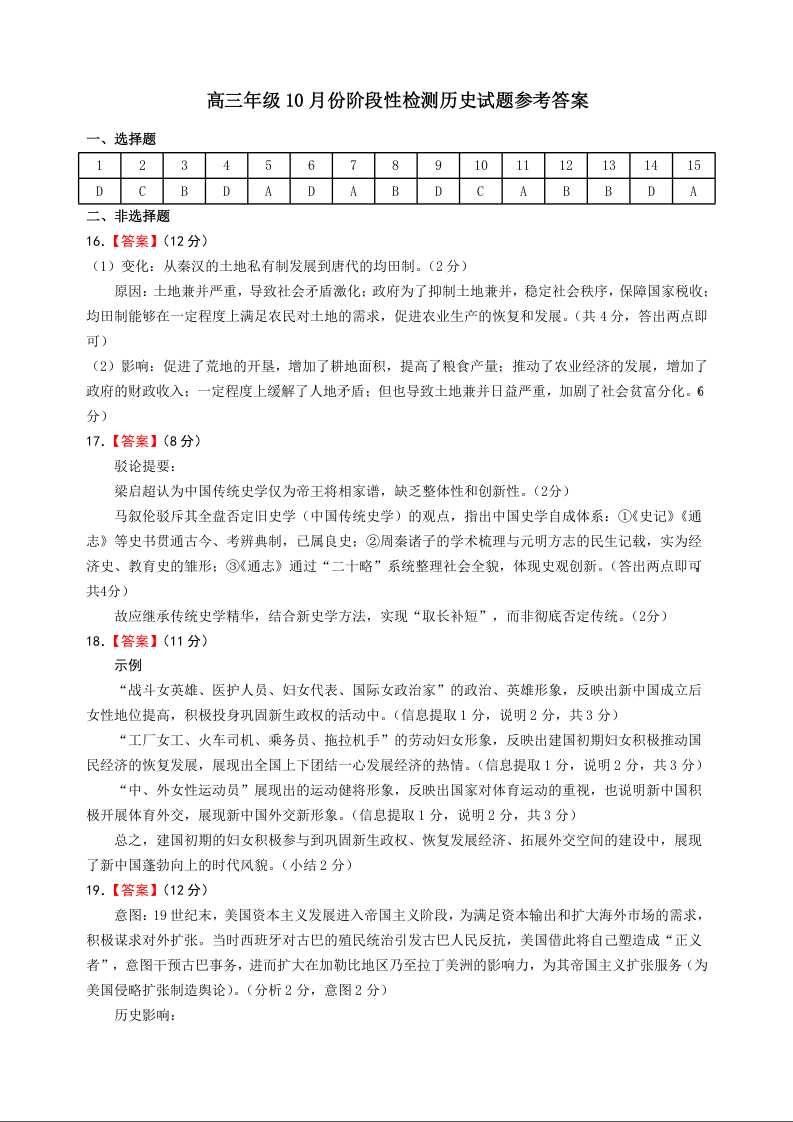 山东师范大学附属中学2026届高三上学期10月份阶段性检测 历史答案.docx