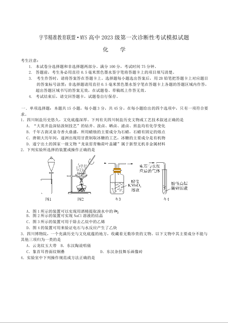 四川省字节精准教育联盟2026届高三上学期第一次诊断性考试模拟 化学试卷(含答案).docx