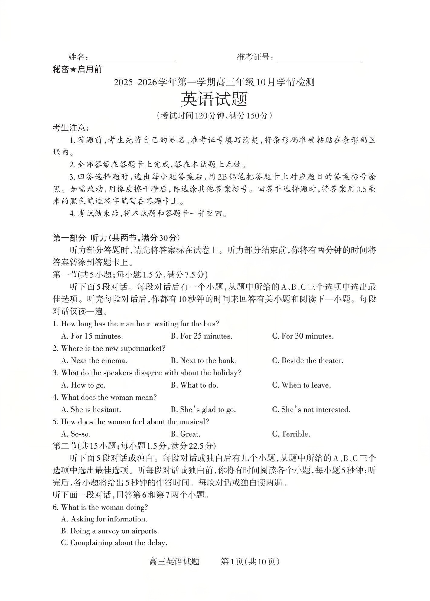 2025-2026学年第一学期高三年级10月学情检测 英语.pdf