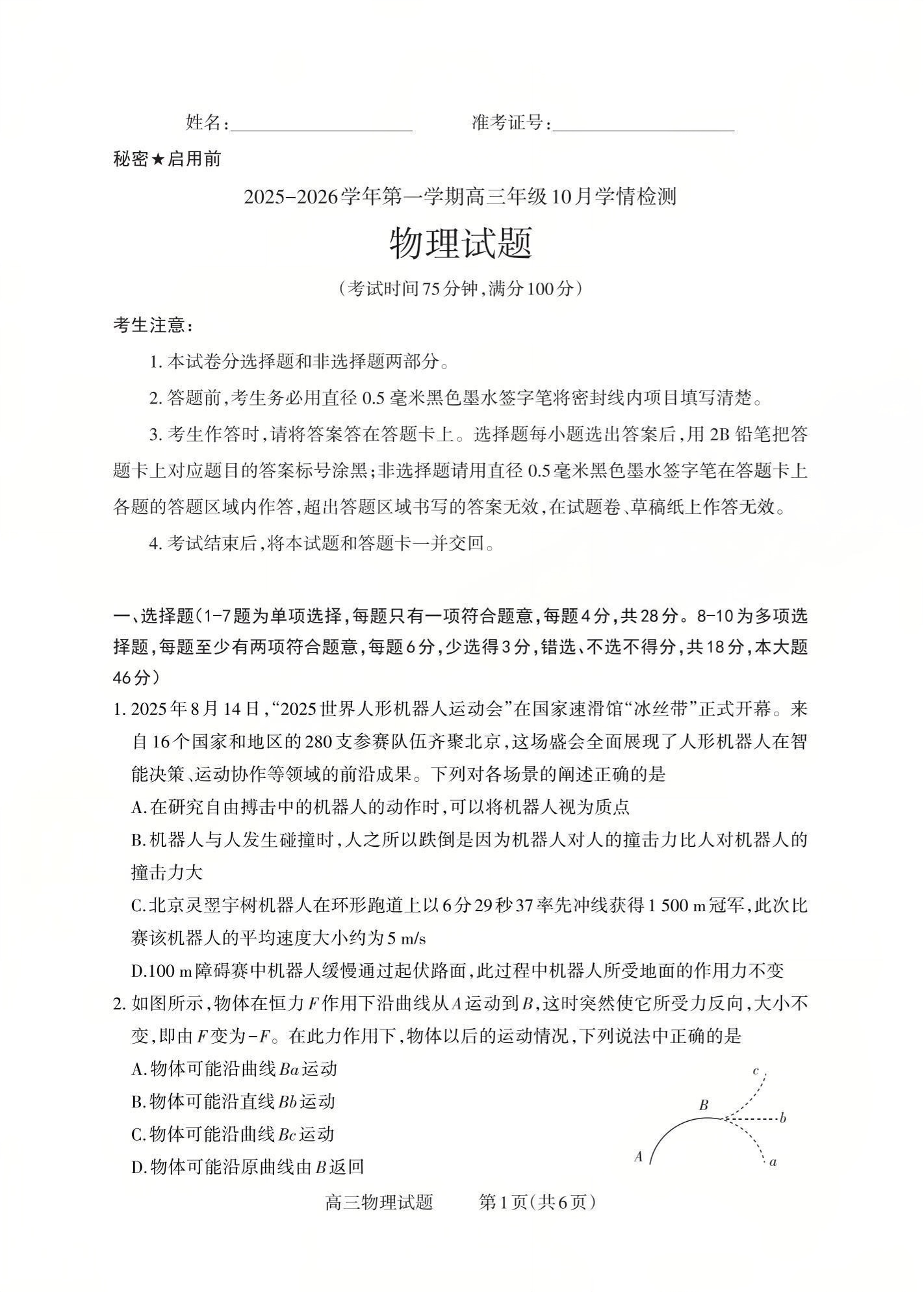 2025-2026学年第一学期高三年级10月学情检测 物理.pdf