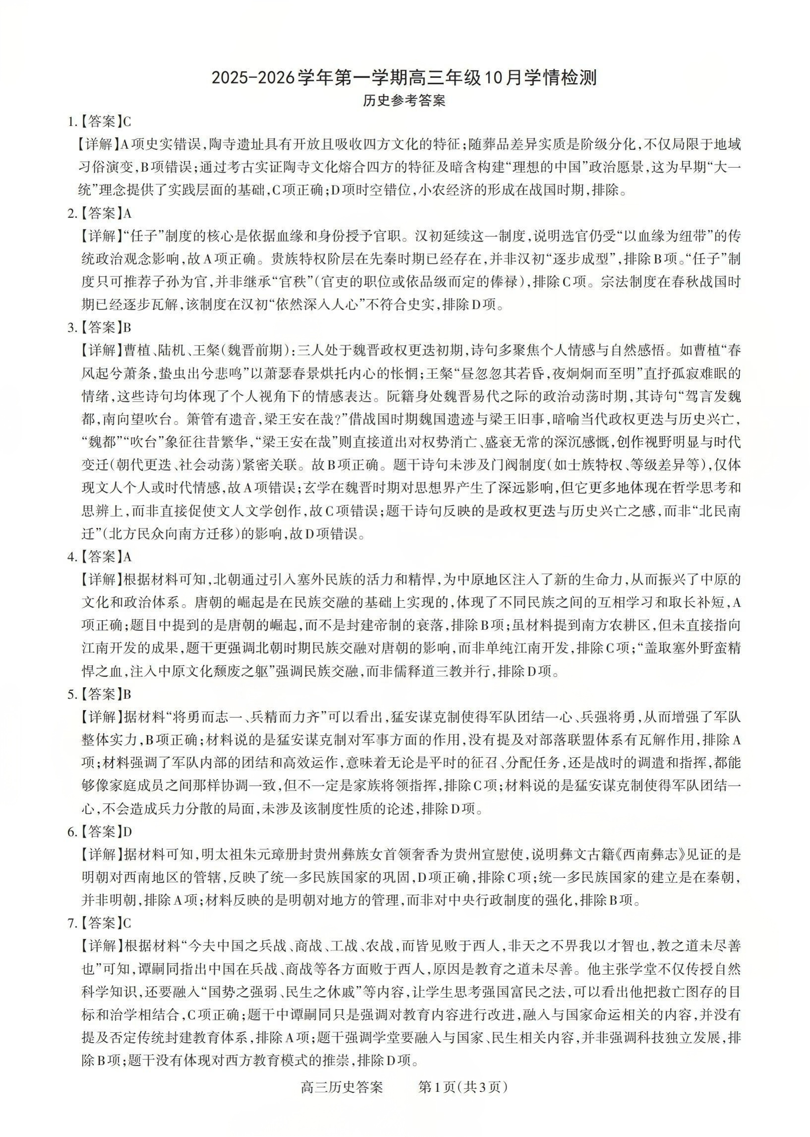 2025-2026学年第一学期高三年级10月学情检测 历史答案.pdf