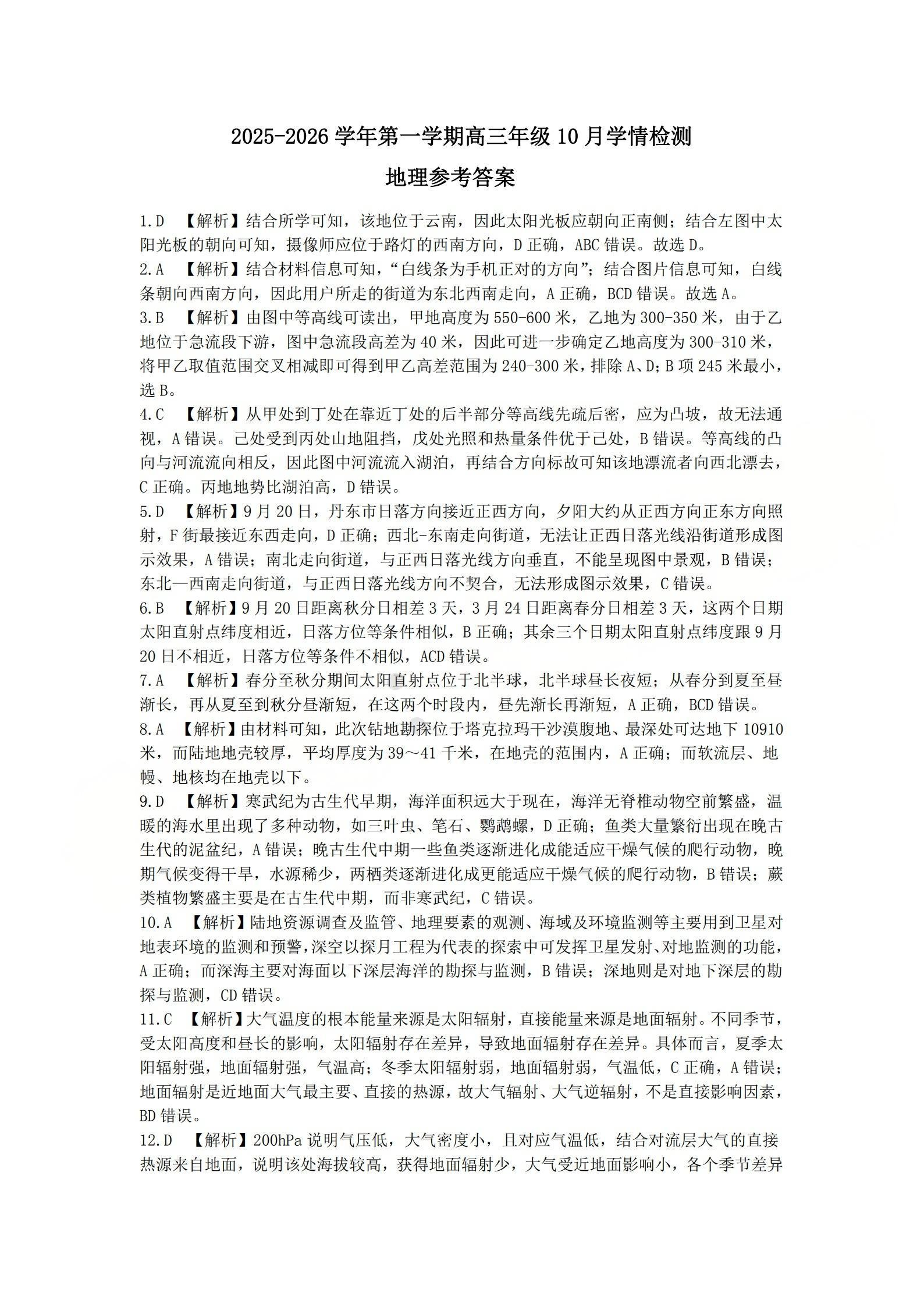 2025-2026学年第一学期高三年级10月学情检测 地理答案.pdf