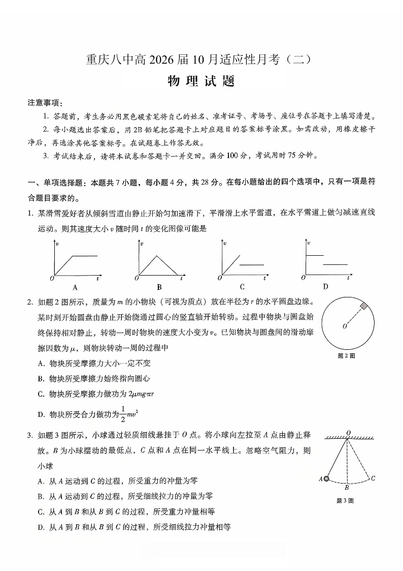 重庆市第八中学2026届高考适应性月考卷(二)物理.pdf