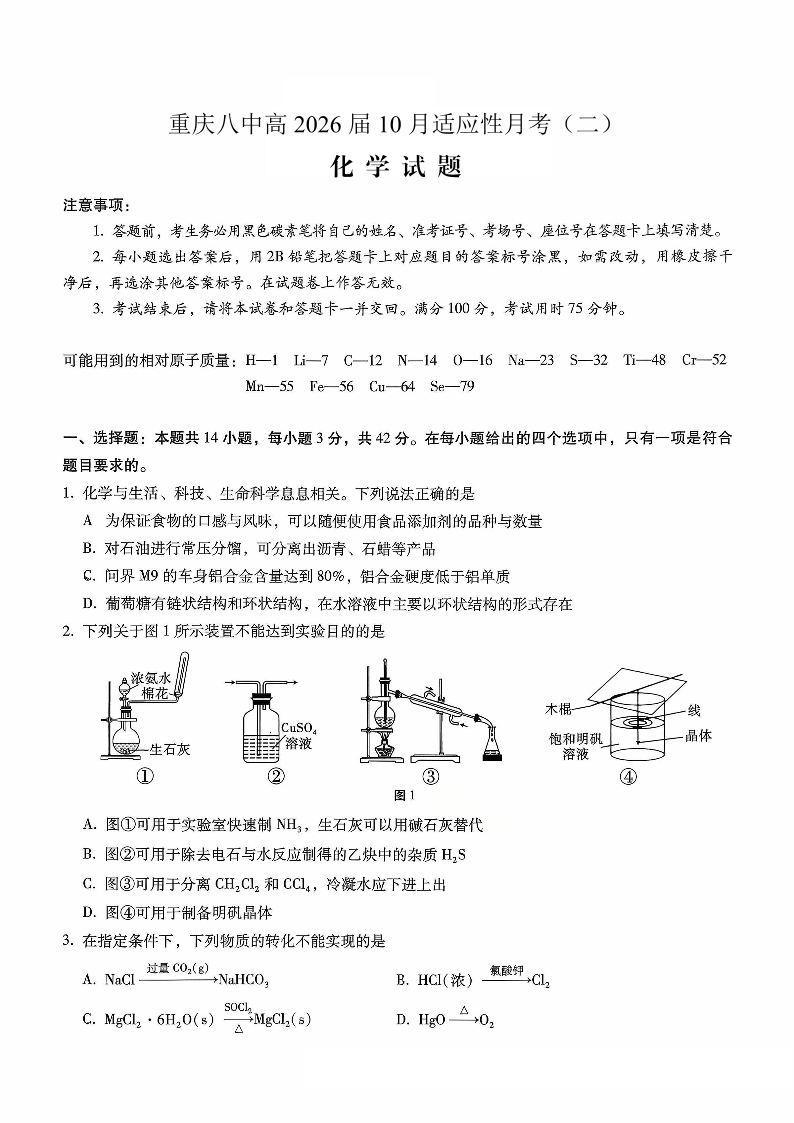 重庆市第八中学2026届高考适应性月考卷(二)化学.pdf