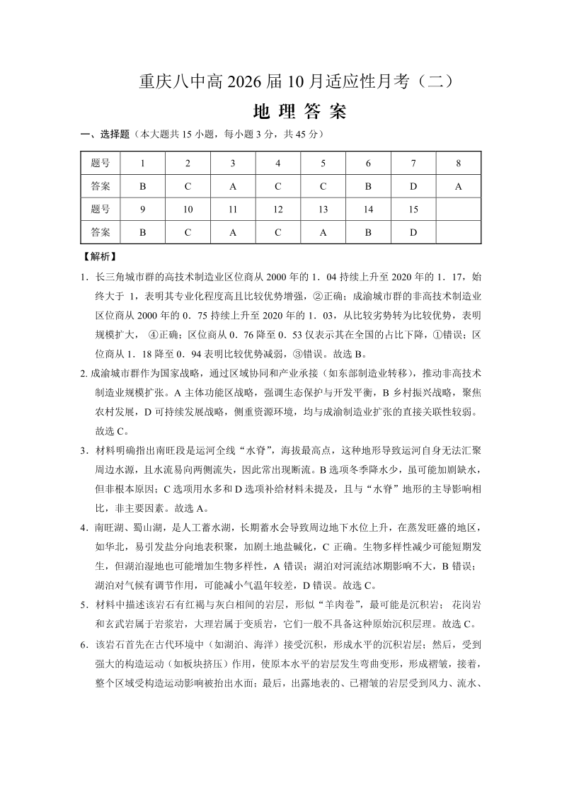 重庆市第八中学2026届高考适应性月考卷(二)地理答案.pdf