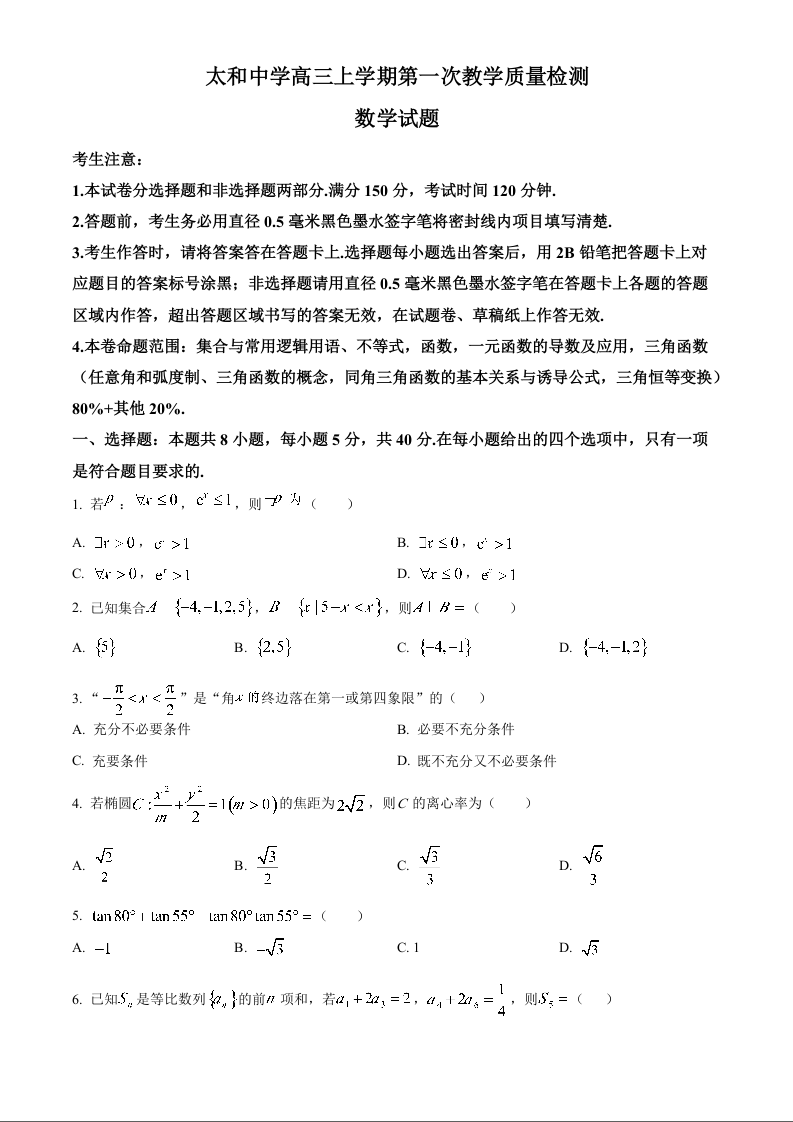 太和中学高三上学期第一次教学质量检测 数学.docx