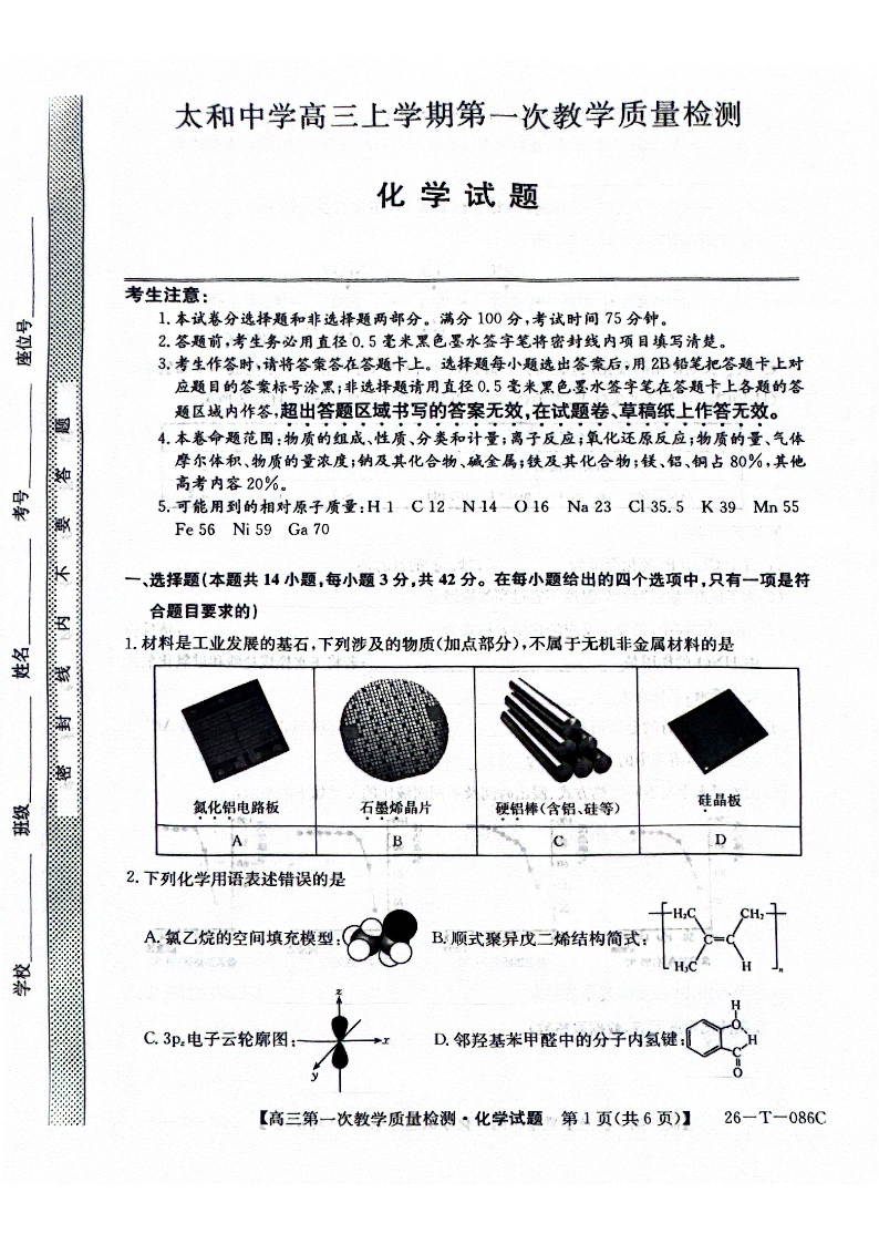 太和中学高三上学期第一次教学质量检测 化学.pdf