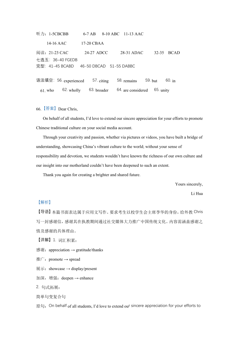 重庆市万州二中高2024级(2026届)高二上学期10月月考 英语答案.pdf