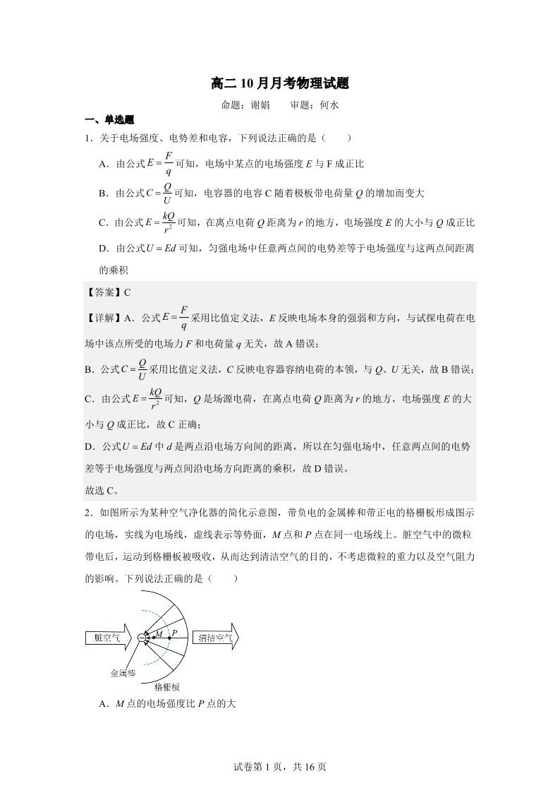 重庆市万州二中高2024级(2026届)高二上学期10月月考 物理答案.pdf