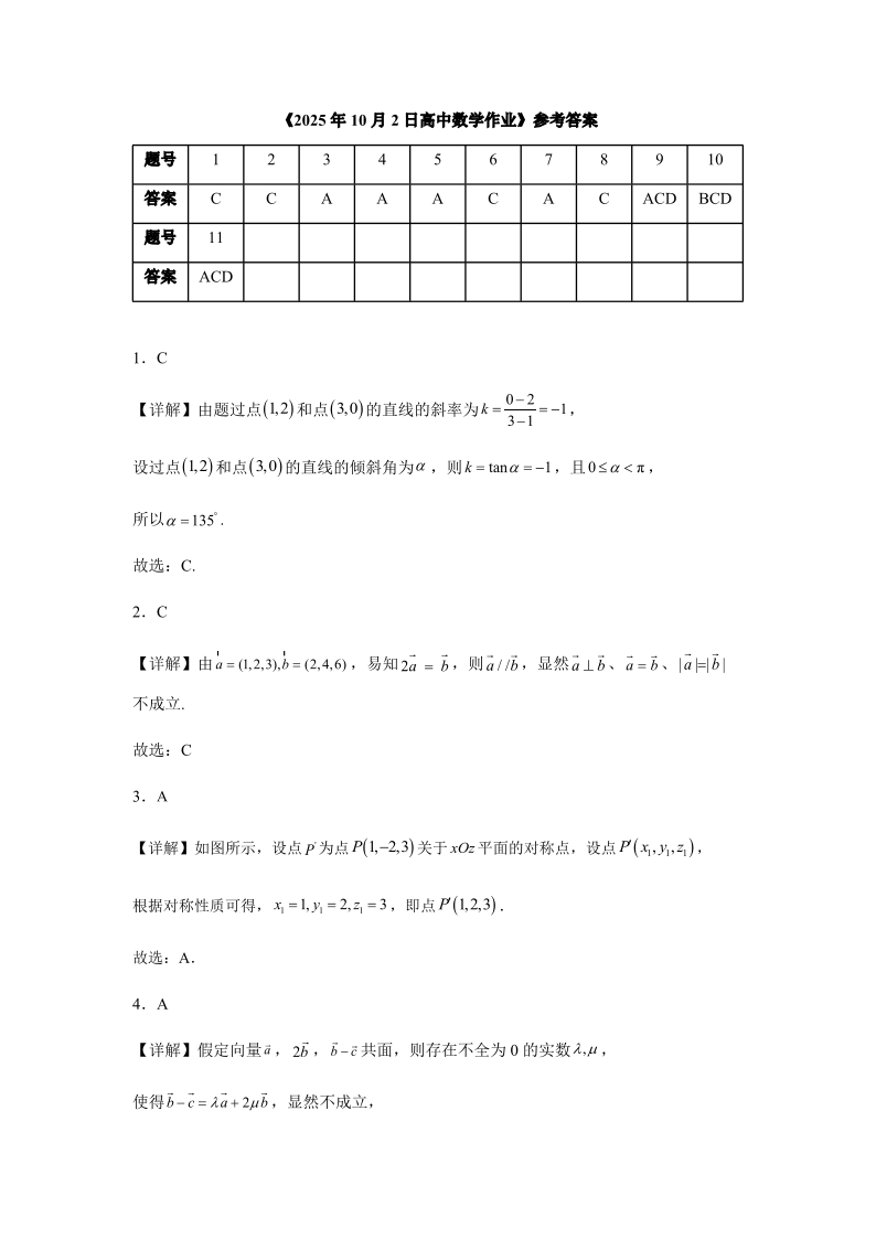 重庆市万州二中高2024级(2026届)高二上学期10月月考 数学答案.pdf