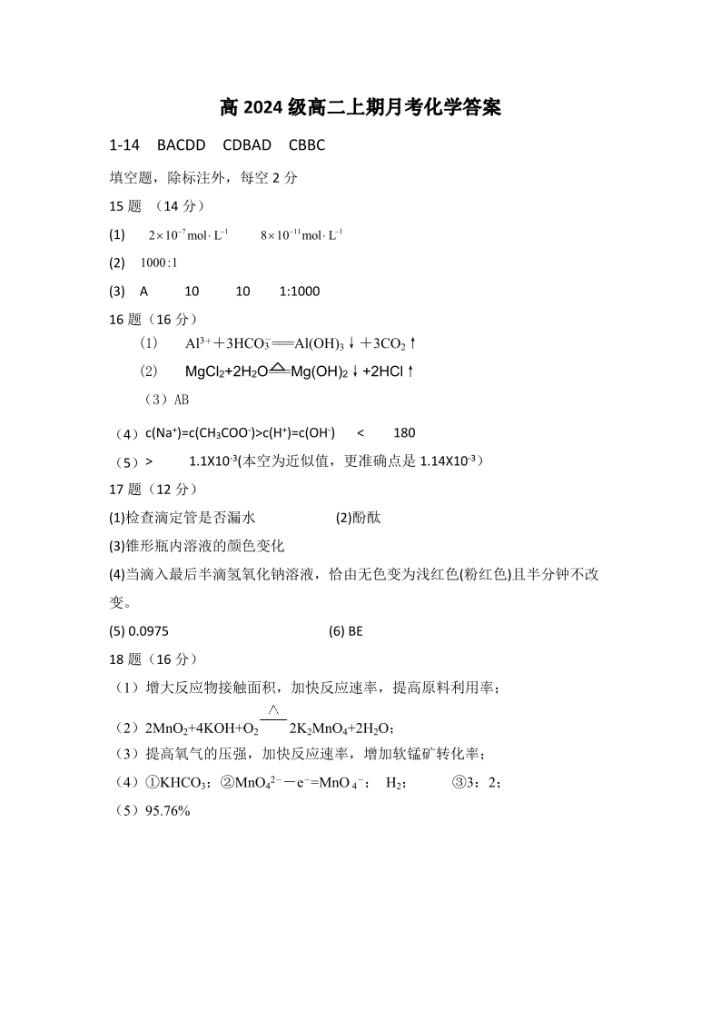 重庆市万州二中高2024级(2026届)高二上学期10月月考 化学答案.pdf
