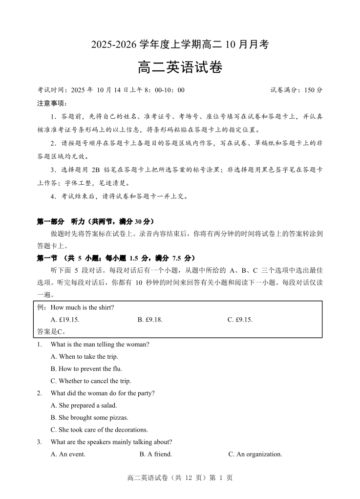 楚天协作体2025-2026学年度上学期高二10月月考 英语.pdf