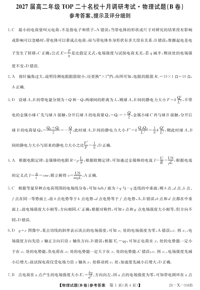 2027届高二年级TOP二十名校十月调研考试(B卷)(26-X-036B)物理答案.pdf