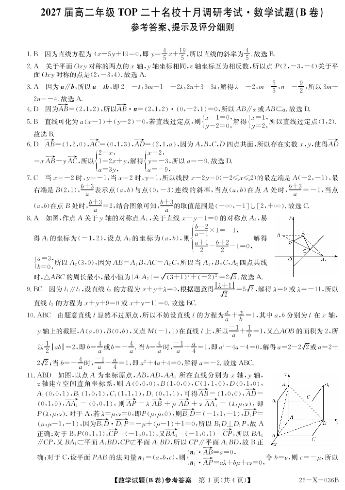 2027届高二年级TOP二十名校十月调研考试(B卷)(26-X-036B)数学(人教A版)答案.pdf