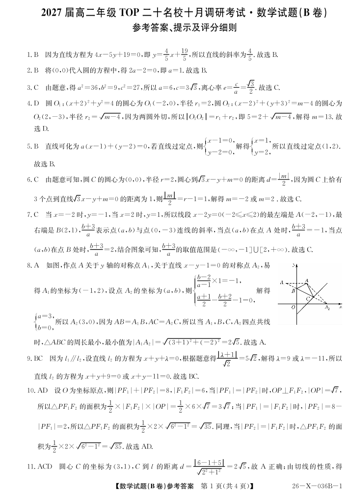 2027届高二年级TOP二十名校十月调研考试(B卷)(26-X-036B)数学(北师大版)答案.pdf