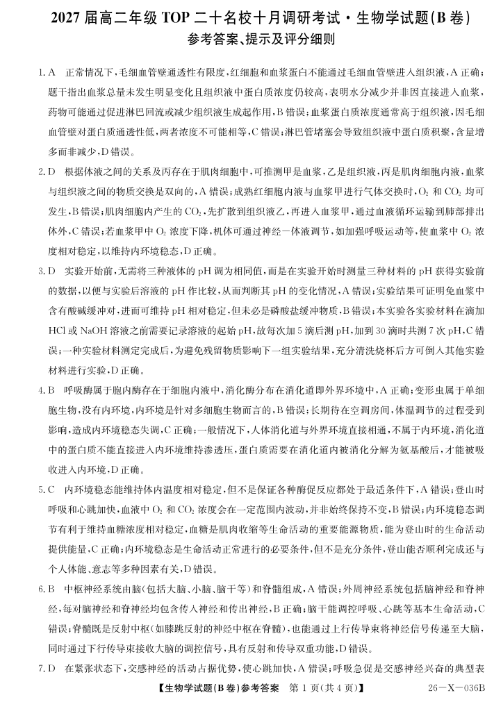 2027届高二年级TOP二十名校十月调研考试(B卷)(26-X-036B)生物答案.pdf