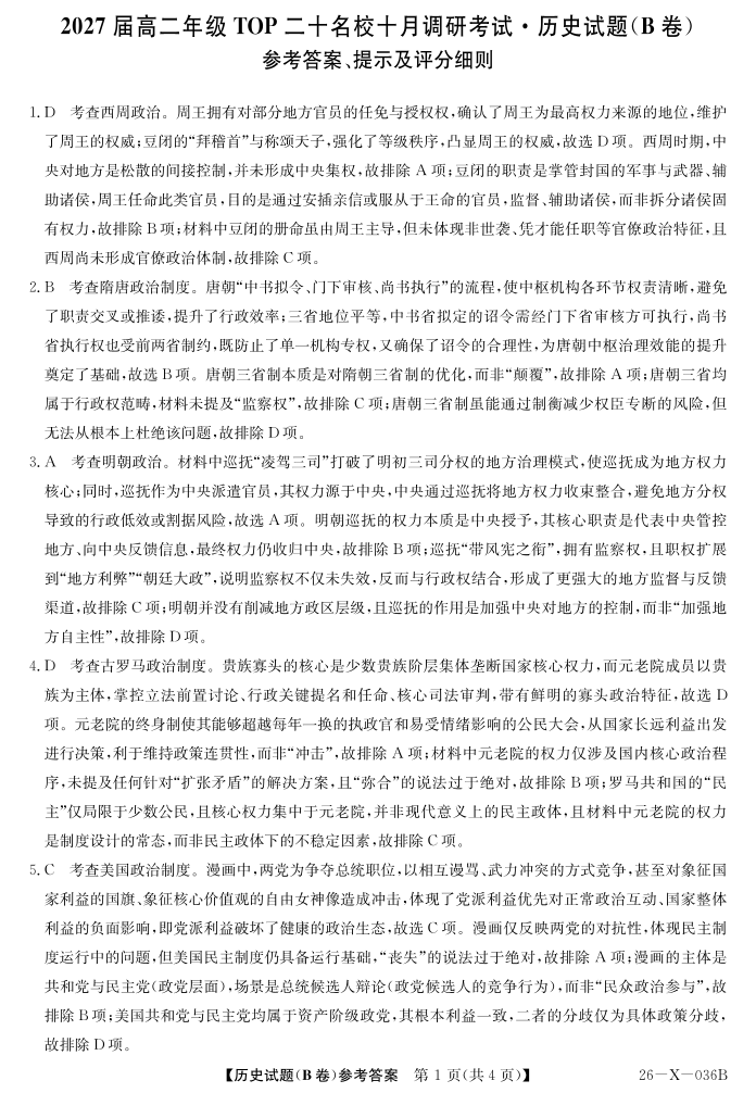 2027届高二年级TOP二十名校十月调研考试(B卷)(26-X-036B)历史答案.pdf