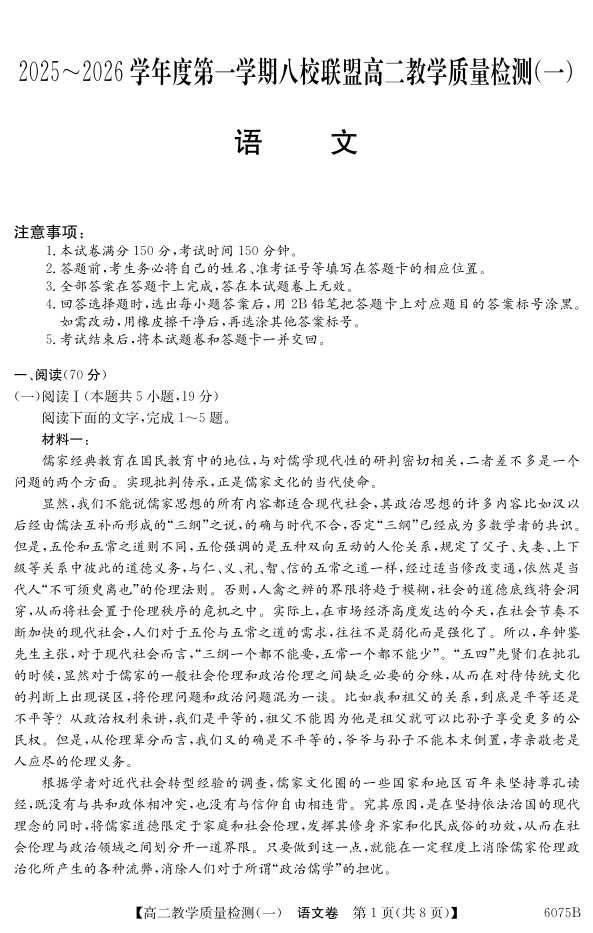 广东省2025~2026学年度第一学期八校联盟高二教学质量检测(一)语文.pdf
