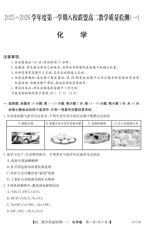 广东省2025~2026学年度第一学期八校联盟高二教学质量检测(一)化学.pdf