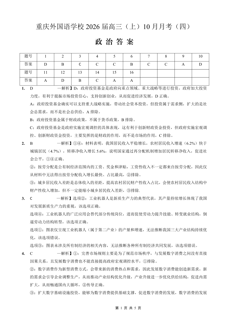 重庆外国语学校2026届高三(上)10月月考(四)政治答案.pdf