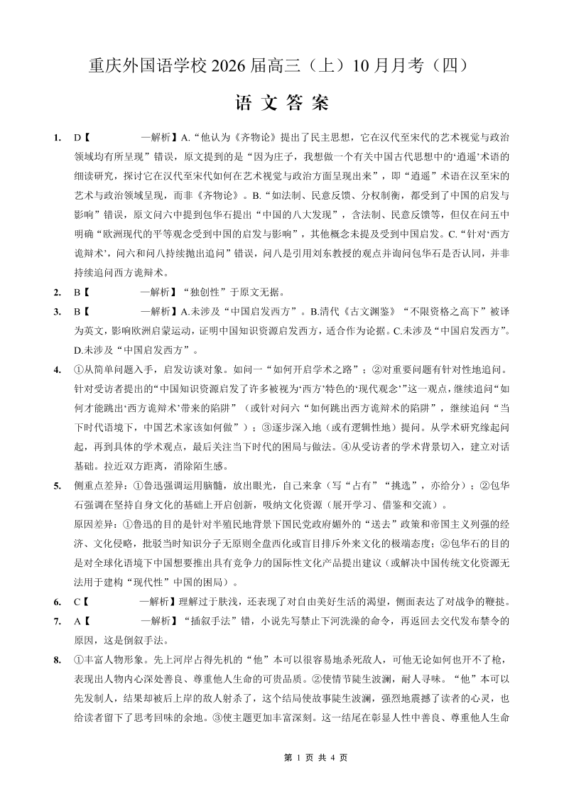 重庆外国语学校2026届高三(上)10月月考(四)语文答案.pdf