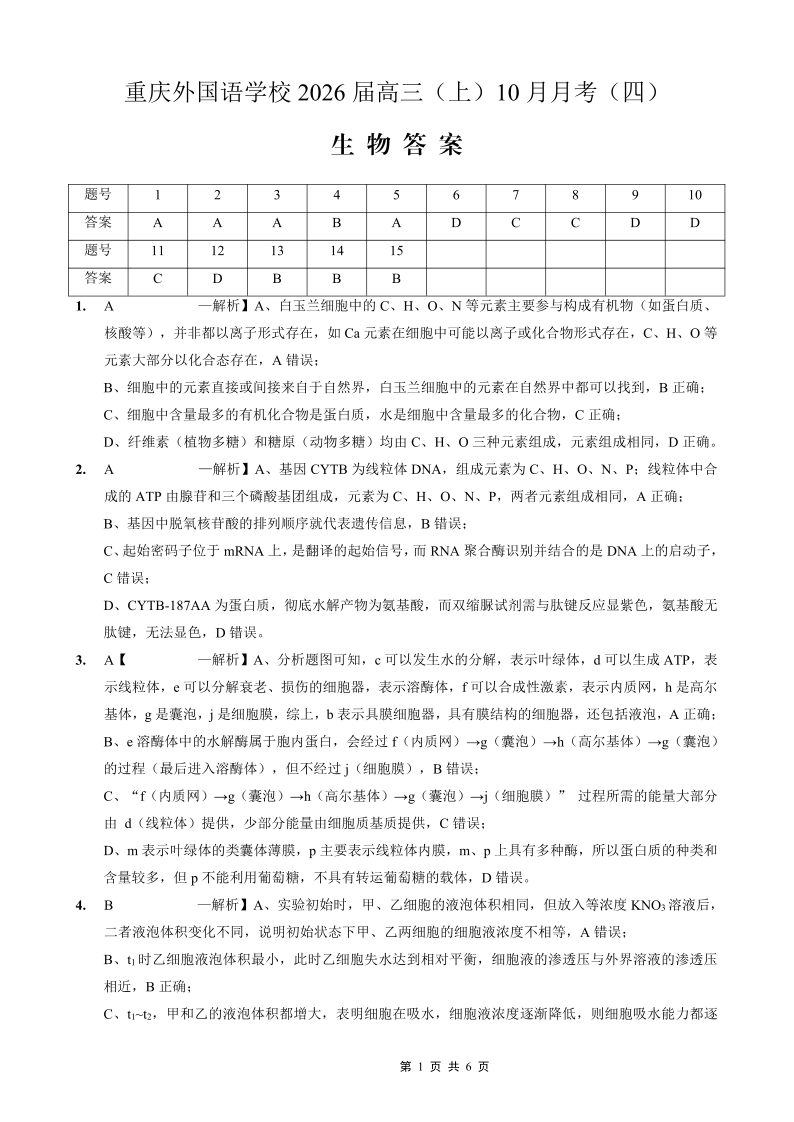 重庆外国语学校2026届高三(上)10月月考(四)生物答案.pdf