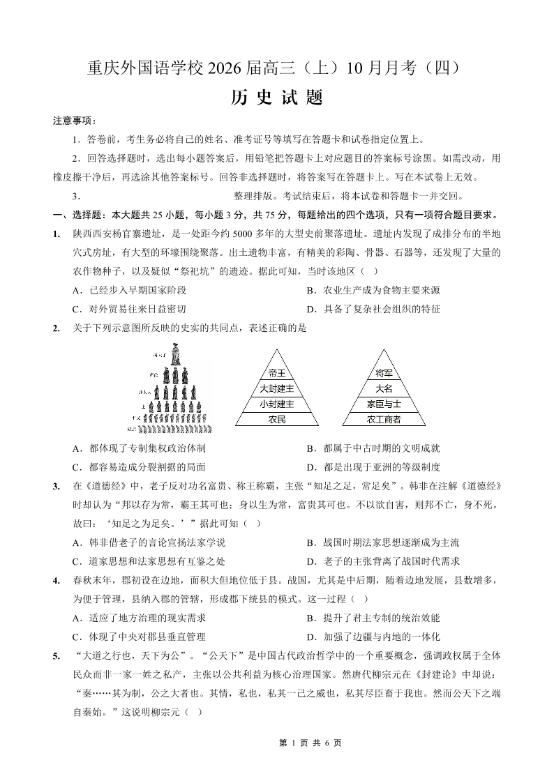 重庆外国语学校2026届高三(上)10月月考(四)历史.pdf