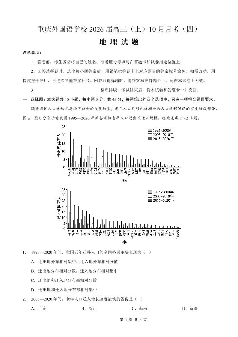 重庆外国语学校2026届高三(上)10月月考(四)地理.pdf