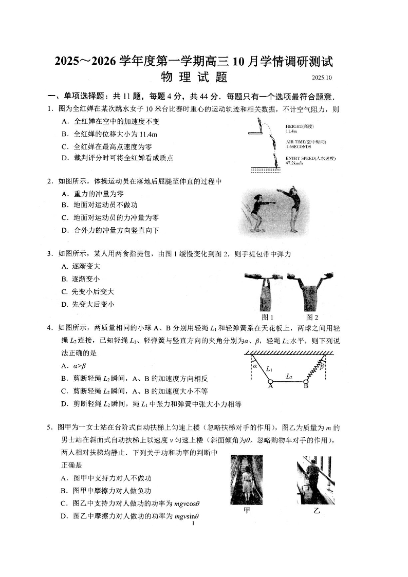 江苏省扬州市高邮市2026届第一学期高三10月学情调研测试 物理试卷(含答案).pdf