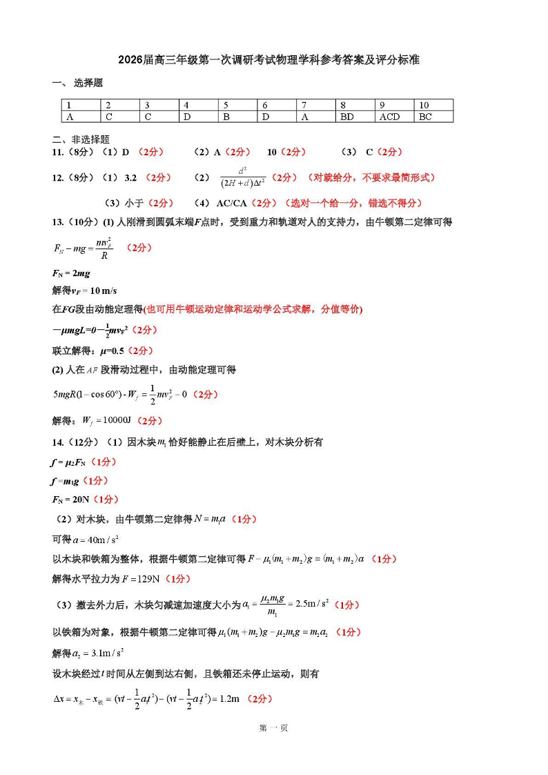 吉林地区普通中学2025-2026学年度高中毕业年级第一次调研测试 物理答案.pdf
