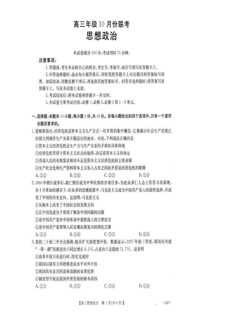 河北省十六校2025-2026学年高三年级10月份联考 政治.pdf