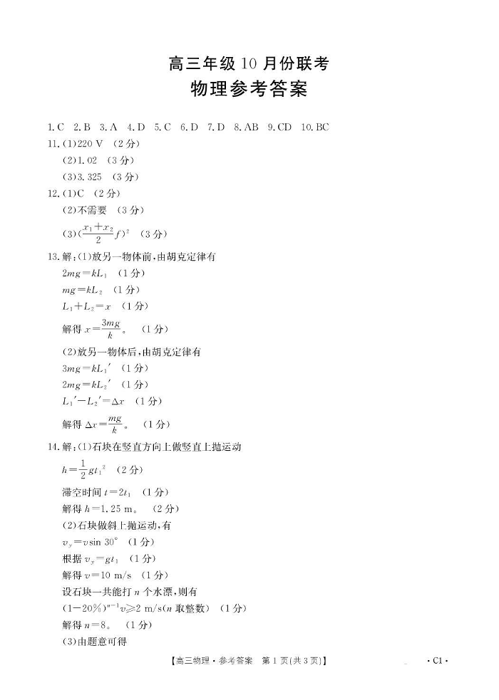 河北省十六校2025-2026学年高三年级10月份联考 物理答案.pdf