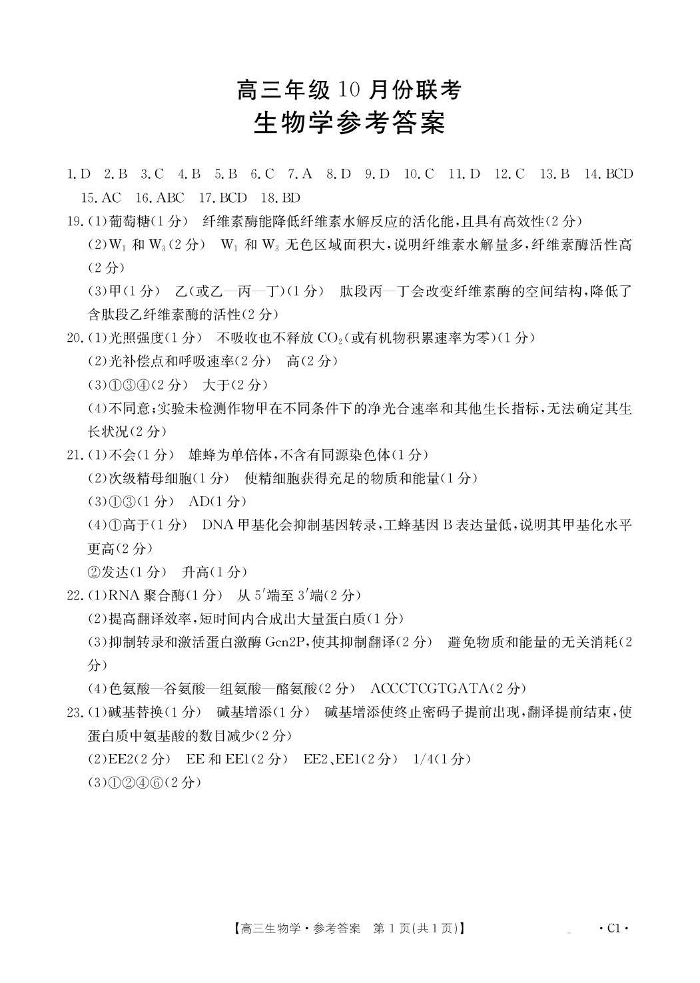 河北省十六校2025-2026学年高三年级10月份联考 生物答案.pdf