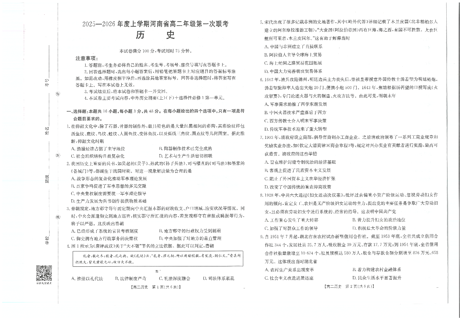 河南省2025-2026年度上学期高二年级第一次联考 历史.pdf