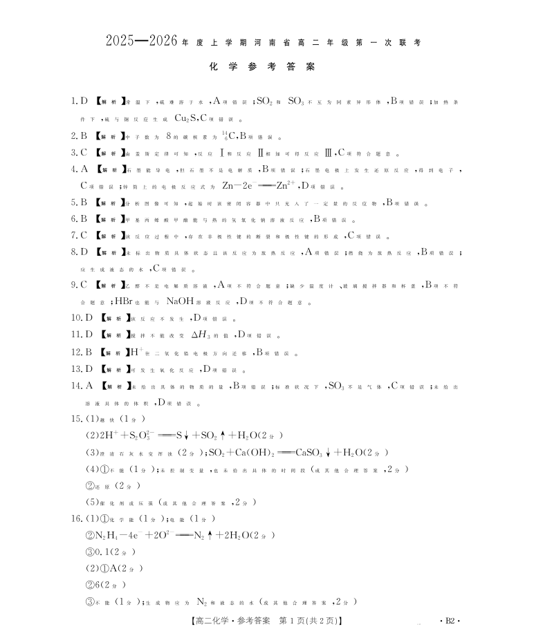 河南省2025-2026年度上学期高二年级第一次联考 化学B2答案.pdf