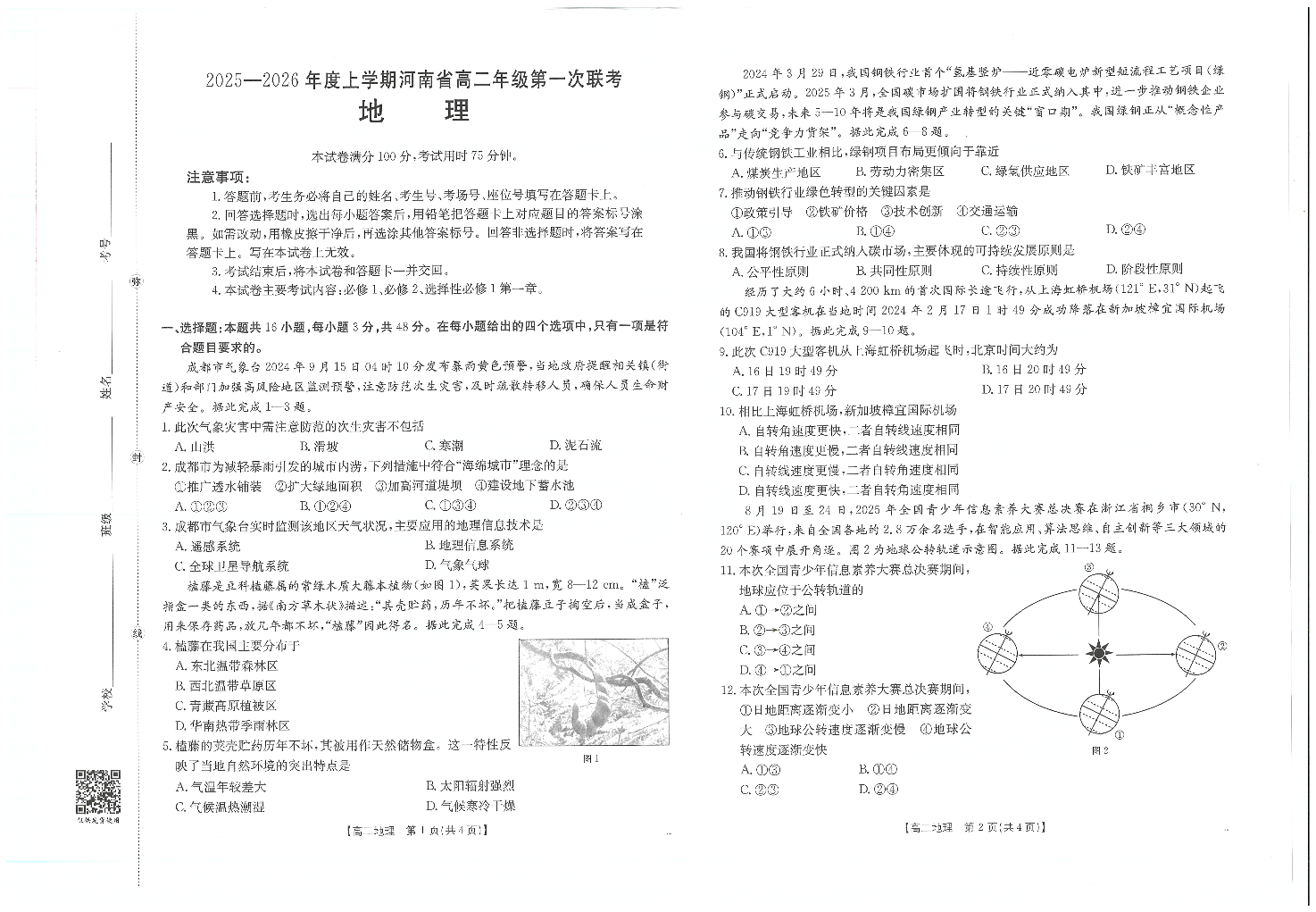 河南省2025-2026年度上学期高二年级第一次联考 地理.pdf